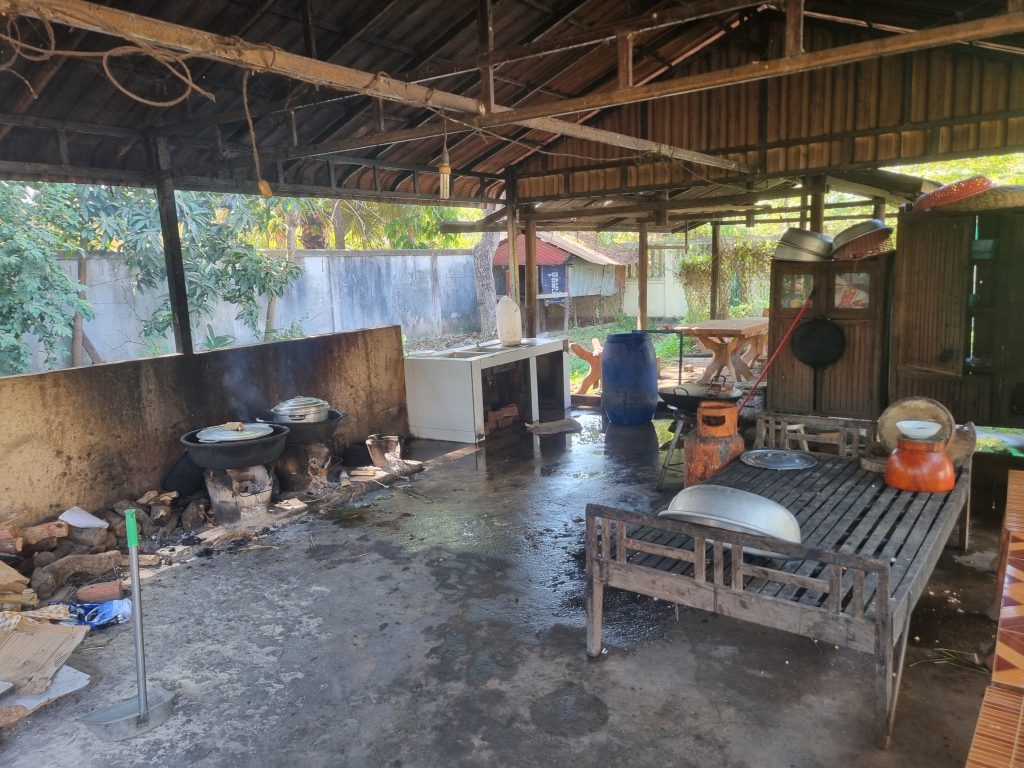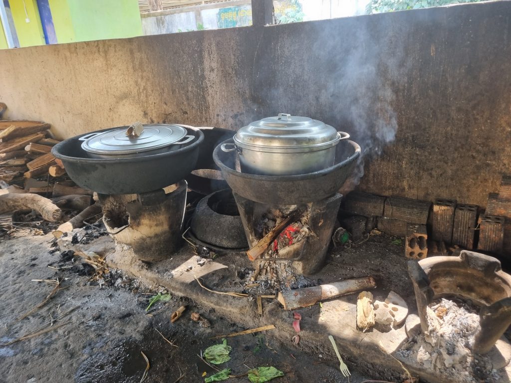 L’orphelinat dispose aujourd’hui de deux cuisines et deux services. Ces cuisines, situées en extérieur, fonctionnent au feu de bois. Cependant, le bois est coûteux et son approvisionnement demande des corvées de coupe.